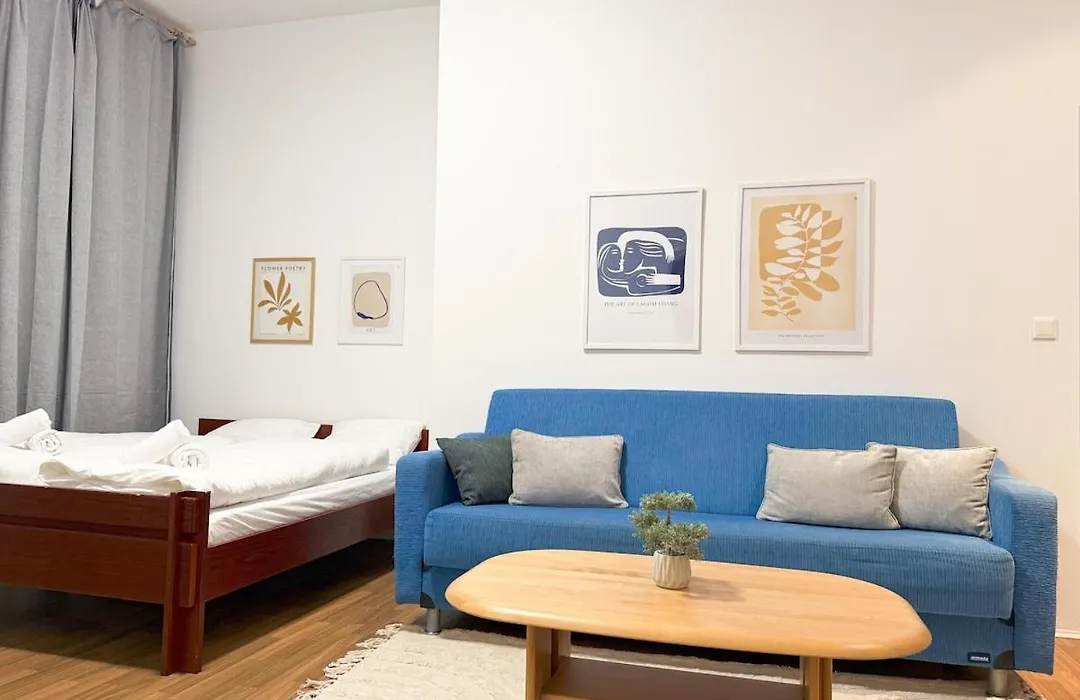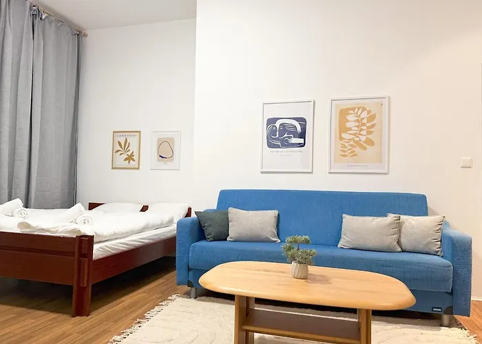 El apartamento ofrece alojamiento en el distrito 21. Floridsdorf, a una distancia de 7 km del Eglise Saint-François d'Assise. La Ópera Popular de Viena está a poco más de 15 minutos en coche del apartamento, mientras que la estación de autobuses Jedlersdorf está cerca de la propiedad.